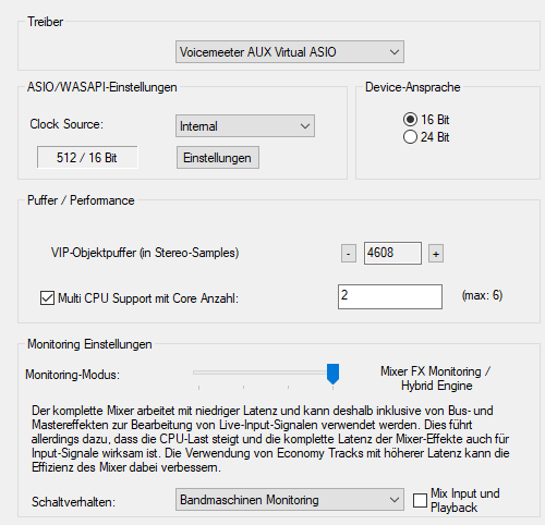 ASIO: Nutzen Sie möglichst ein mit ASIO-Treibern ausgestattetes Soundkartenmodell. Das hat einige Vorteile gegenüber dem MME-/WDM-Treibersystem: