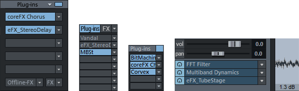 Effekt-Slots in Objekteditor, Trackeditor, Mixer und Spurkopf