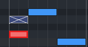 Stumm geschaltete Events (Tastenkürzel Strg + M) werden in Matrix-Editor ausgekreuzt dargestellt.