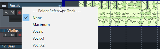 Mit Klick auf das Dreieck am Spurnamen des Foldertracks können Sie eine der enthaltene Spur als Referenzspur auswählen.