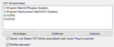 Tipp: Für ein komplettes Zurücksetzen der VST-Einstellungen und ein erneutes Einlesen der Plug-ins löschen Sie die Datei VSTPlugins.ini im Ordner C:\ProgramData\Boris FX\Music Studio2025. Vor einem erneuten Scan müssen Sie dann auch alle zusätzlichen Suchpfade wieder hinzufügen.