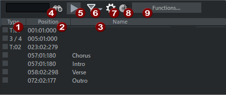 Der Markermanager listet alle im aktuellen Projekt enthaltenen Marker auf und ermöglicht es Ihnen, diese direkt aus der Liste anzuspringen oder anzuspielen.