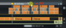 Der Abspielmarker kann auch mit Hilfe der Pfeiltasten Ihrer Tastatur bewegt werden. Wenn Sie zusätzlich die Alt-Taste gedrückt halten, können Sie sich im Soft-Autoscroll-Modus durch das Arrangement bewegen.