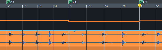 Rasterpositionsmarker weisen einer bestimmten Zeitposition eine musikalische Position zu. Sie definieren damit indirekt das Tempo , da durch diesen Marker das Tempo davor so angepasst wird, dass die gewünschte musikalische Position genau an der Markerposition erreicht wird.