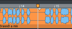 Zoomen Sie Ihr Projekt durch Klicken und vertikales Ziehen. Dabei können Sie gleichzeitig durch horizontales Ziehen die Abspielmarkerposition oder die Bereichsgrenzen verändern.