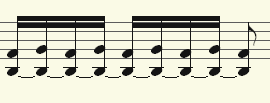 Up to two independent voices can be annotated for each note line. The voices differ in the direction of the note stems: the first voice is always notated with the stem pointing upwards, the second with the stem pointing downwards. Pauses are displayed individually for each voice.