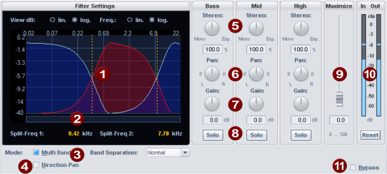 The Multiband Stereo Enhancer allows manipulation and correction of the stereo image in three independent frequency bands.