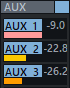 Post-Fader bedeutet, dass das AUX-Send-Signal erst nach dem Lautstärkeregler abgegriffen wird, nachdem es Eingangsverstärkung, Klangregelung und Effekte passiert hat. AUX-Regler, die neu angelegte AUX-Sends steuern, sind voreingestellt Post. Der AUX-Schieberegler in Mixerkanal und Track Editor wird orange dargestellt.
