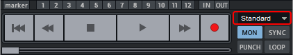 Sie können den Modus in diesem Menü in der Transportkonsole, im Dialog Aufnahmeoptionen oder mit den Optionen im Menü Wiedergabe > Aufnahmemodus/Punch In umstellen.