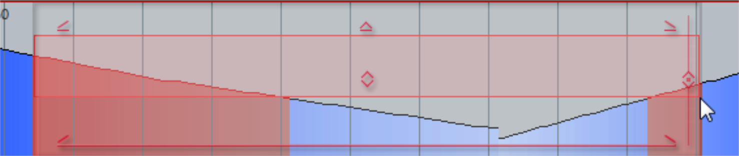 Dauer strecken/stauchen: Ziehen Sie an den Rändern der Auswahl, um die Kurve zeitlich zu strecken bzw. zu stauchen. |
