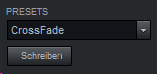 Um die aktuellen Einstellungen im Crossfade-Editor als Crossfade Preset abzuspeichern, klicken Sie auf die Schreiben-Schaltfläche und vergeben Sie einen neuen Namen. Das abgespeicherte Preset erscheint von nun an in der Presets-Liste.