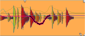 Parameterfeld: In diesem Feld wird der aktuelle Parameterwert an der Abspielmarkerposition angezeigt. Im gestoppten Zustand kann dieser Wert durch senkrechtes Ziehen an der Schaltfläche rechts geändert werden. So können Sie auf diese Weise die Kurve auch numerisch bearbeiten.