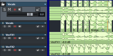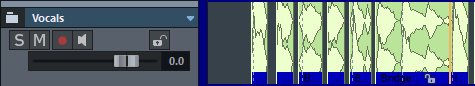 Beachten Sie dabei aber: Auch wenn im Foldertrack nur die Objekte der Referenzspur angezeigt werden, wirken Schnittoperationen mit Bereichen trotzdem auf alle Spuren des Foldertracks!