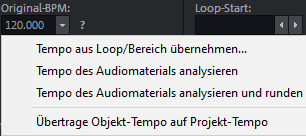 Ist Melodyne installiert, kann es auch dazu benutzt werden, das Tempo von Objekten zu ermitteln. Mehr dazu im Abschnitt Objekteditor, Pitchshifting/Timestretching.