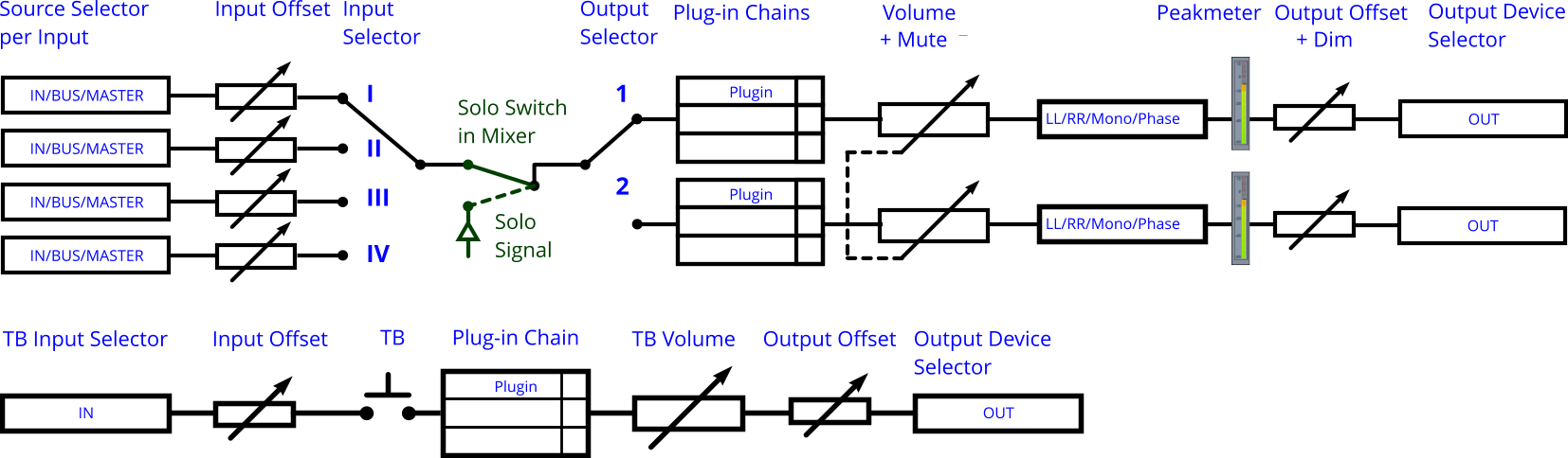Input Offset: Hier können sie den Pegel des Eingangssignals unabhängig vom gewählten Ausgang anpassen. |