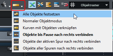 Mit der Taste K wird der Objektmodus Objekte der aktiven Spur nach rechts verbinden vorübergehend aktiviert, mit L der Objektmodus Objekte aller Spuren nach rechts verbinden. Sie könnten also auch so arbeiten, dass Sie nur den normalen Objektmodus benutzen und die Nachzieh-Modi bei Bedarf mit der Tastatur aktivieren.