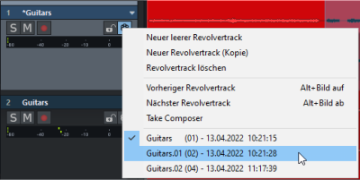 Im unteren Bereich des Menüs können Sie die verschiedenen Revolvertracks direkt auswählen. Mit den Tastaturkürzeln Alt + Bild auf / Alt + Bild ab (Vorheriger Revolvertrack/Nächster Revolvertrack) schalten Sie zwischen den Revolvertracks hin und her.