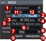 Der Abschnitt MIDI enthält die spezifischen Einstellungen für MIDI-Spuren.
