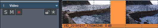 Für die Videodatei wird oberhalb der ersten Audiospur ein Videoobjekt in eine eigenen Videospur erzeugt. Das Videoobjekt zeigt dessen Inhalt als Vorschaubilder an.