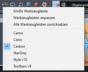 Durch Rechtsklick auf eine Schaltfläche können Sie die Schaltflächen als große Symbole anzeigen lassen