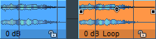 Note: The phrase "into the lower part of the track" refers to working with the Universal mouse mode. In this mode, ranges are selected in the upper part of the track. In other mouse modes (object mode, object/curve mode) the entire track can be used.