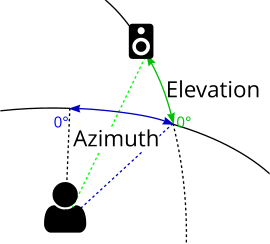 Elevation: Bestimmt die Höhe des Lautsprechers und ist für die drei Lautsprecherebenen vordefiniert: +30° (oben), 0° (mittig), -30° (unten). Daher wird für die Elevation nur die Ebenenbezeichnung verwendet.