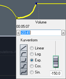Mit Rechtsklick auf einen Automationskurvenpunkt öffnen Sie den Dialog für die numerische Bearbeitung des Wertes und die Bearbeitung der Kurvenform.