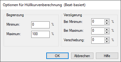 Mit Klick auf Optionen erreichen Sie einen zusätzlichen Dialog, der die Art und Intensität der Beeinflussung der Automationskurve durch den Beat regelt.