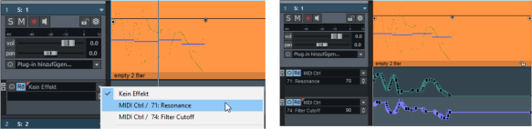 Mit der Funktion Menü Objekt > MIDI-Daten bearbeiten > Controller-Kurven aus MIDI-Objekt extrahieren lassen sich die MIDI-Controller-Daten (CC) eines Objekts in Automationskurven umwandeln. Das hat den Vorteil, dass sich diese Daten komfortabel direkt in den Automation Lanes im Projektfenster bearbeiten lassen.