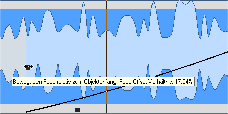 Mit Doppelklick das entsprechende Eingabefeld können die Fadelängen auch direkt bearbeiten. Tastaturkürzel: Fade-out-Länge L oder Umschalt + L, Fade-in-Länge Strg + L