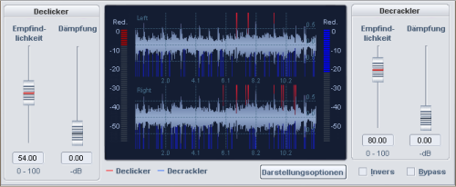 Der DeClicker befindet sich auf der linken Seite des Dialogs, der DeCrackler rechts.