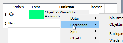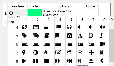 3. Unter Farbe legen Sie die Farbe des Symbols fest. Klicken Sie in die Spalte Funktion, um das komplette Hauptmenü von Sequoia zu öffnen. Wählen Sie den Menübefehl aus, der mit der Schaltfläche ausgeführt werden soll.