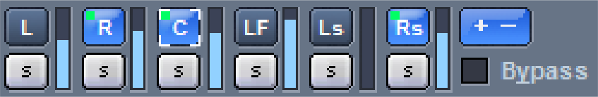 Mit den S-Schaltflächen können Sie die einzelnen Surround Kanäle auf Solo schalten.