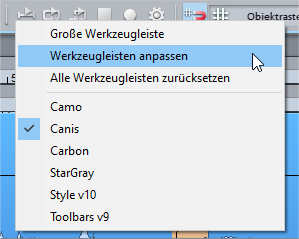 Durch Rechtsklick auf eine Schaltfläche können Sie die Schaltflächen als große Symbole anzeigen lassen