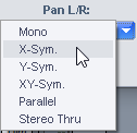 The left and right channels are symmetrically aligned to the y-axis. For example, this allows you to pan a stereo signal to front L (Left) /R (Right). |