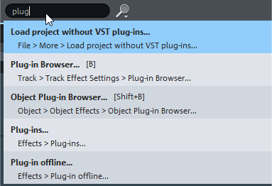 You can also use the search field to search for track and object names or to execute specific commands! For more information, see Macro functionality.