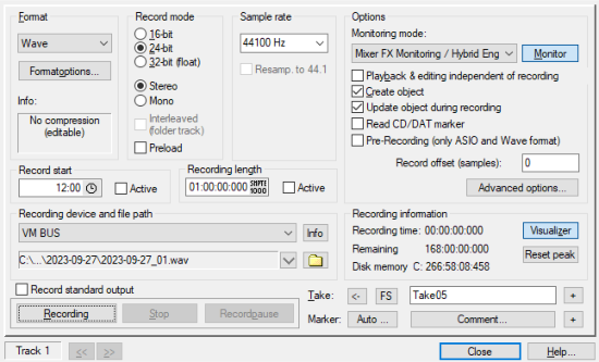 • Create object: All recordings create objects on the corresponding tracks. You could disable this default behavior here.