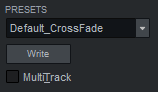 To save the current settings in the Crossfade Editor as a crossfade preset, click the Write button and assign a new name. The saved preset will now appear in the Presets list.