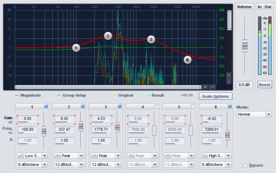 Normal: Minimum phase EQ, corresponds to the operation of the 4-band parametric equalizer of older Sequoia versions (compatibility mode ).
