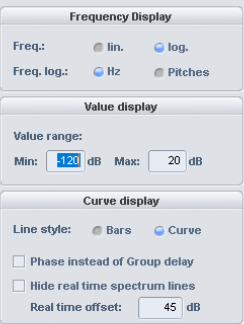 - Group delay/Phase: (switchable in the scale options). The group delay describes the frequency-dependent time delay when the signal passes through, while the phase shows the dependence of the phase from the frequency.