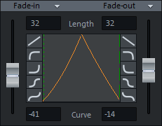 Fade in and fade out can be edited in this area. In the fields Length you can specify the fade lengths numerically in ms.