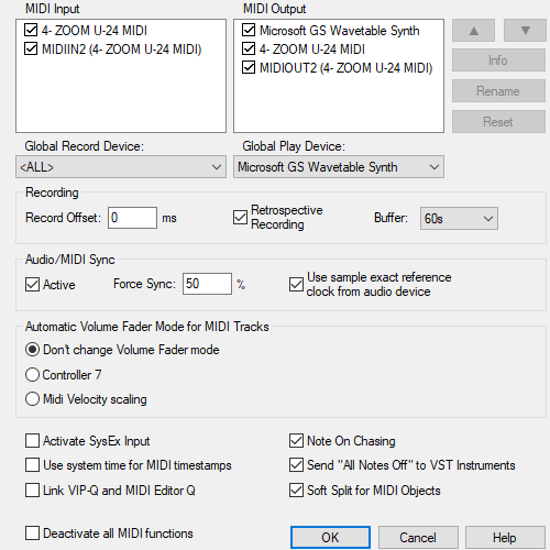 Deactivate all MIDI functions: If you do not use MIDI in your project, you can use this option to deactivate all MIDI functions in order to increase program performance.