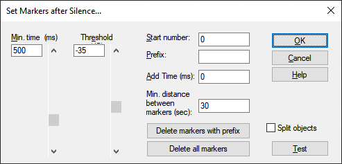 Delete markers with prefix: Deletes all markers that have the given prefix. This allows you, for example, to delete all markers that were created by a previous application of Markers after Silence….