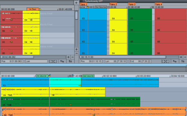 If the recordings are later to be edited together with the source destination cut, this creates the problem of having to constantly jump back and forth in the project or switch between projects to compare takes and find the right sections. This is where multi-synchronous cut comes in handy: