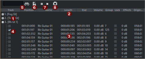 To expand and collapse a track, click the plus symbol in front of the track number. If you drag and drop objects from the list to a position in the arranger, they will be moved to that position. If you hold down the Ctrl key while doing this, you will copy the objects