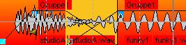 Red/Blue alternation: This display mode always colors the waveform of neighboring objects alternately red and blue. This way, crossfades can be optimally viewed in the "Transparent" and "Interleaved" drawing modes.