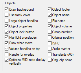 Draw samples: Here you can turn the wave form display on and off. When deactivated, volume or pan curves are more clearly visible.