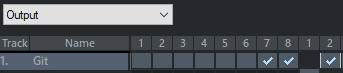 Assign the available outputs (hardware outputs, masters, or busses) to the tracks of your project by clicking in the matrix fields. Another click cancels an existing routing.