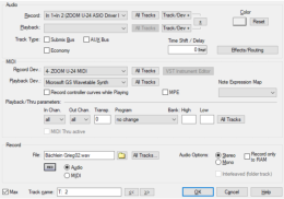 • Record Dev./Playback Dev.: MIDI input and output device selection. The list of playback devices also includes all VST instruments.