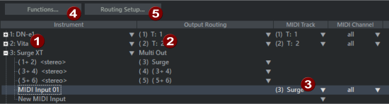 Opens the Routing settings for multi channel software instruments. |